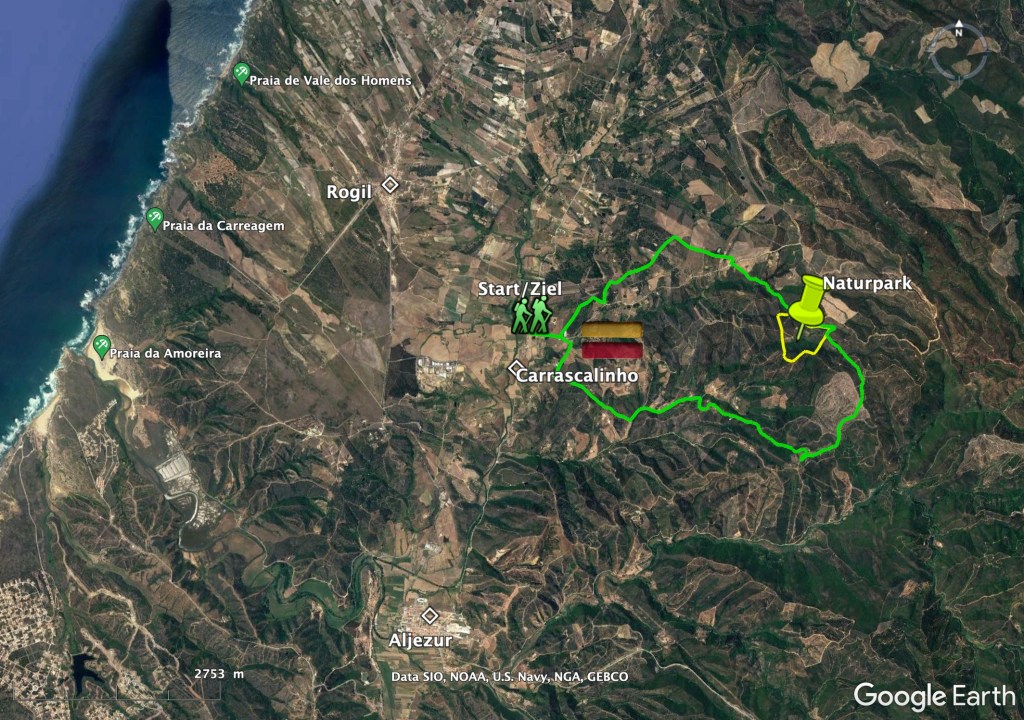 Der Rundwanderweg Carrascalinho gehört zur Rota Vicentina und führt direkt an unserem Naturpark vorbei. Die letzten 1,6 km bis zu uns sind mit dem Auto etwas holprig. Aber vom Fiat Uno bis zur Mercedes S-Klasse hat es bisher jeder geschafft, nur tiefer gelegt sollte das Auto nicht sein.