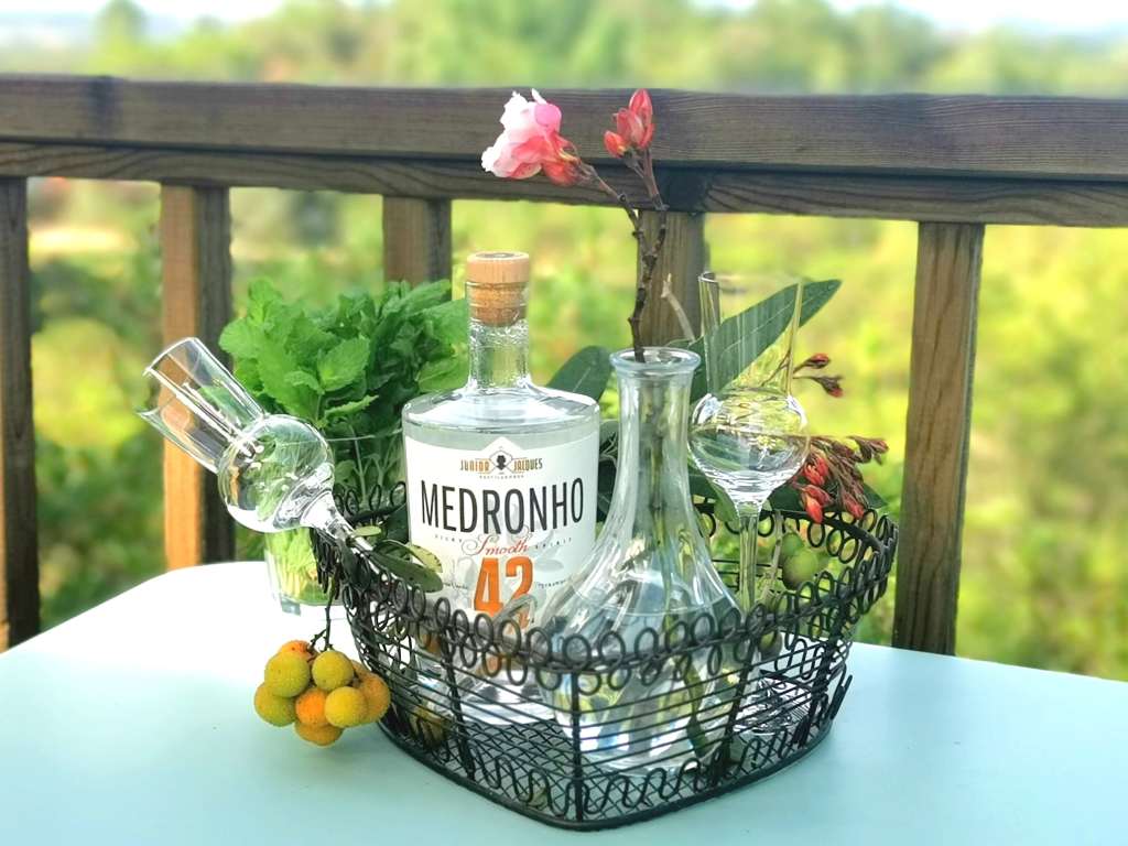 Typisch für die Region, wachsen in unserem Naturpark, Korkeichen, Pinien, Zistrosen und vor allem Erdbeerbäume in Hülle und Fülle. Die Früchte des Erdbeerbaumes (Medronho-Baum) auf unserem Gelände sind der Grundstoff für einen hervorragenden Medronho, einen typischen, lokalen Schnaps. Bei deinem Besuch kannst du unseren hauseigenen Medronho in zwei verschiedenen Größen kaufen und natürlich direkt vor Ort probieren. Er ist garantiert handgemacht und von uns selbst gepflückt.