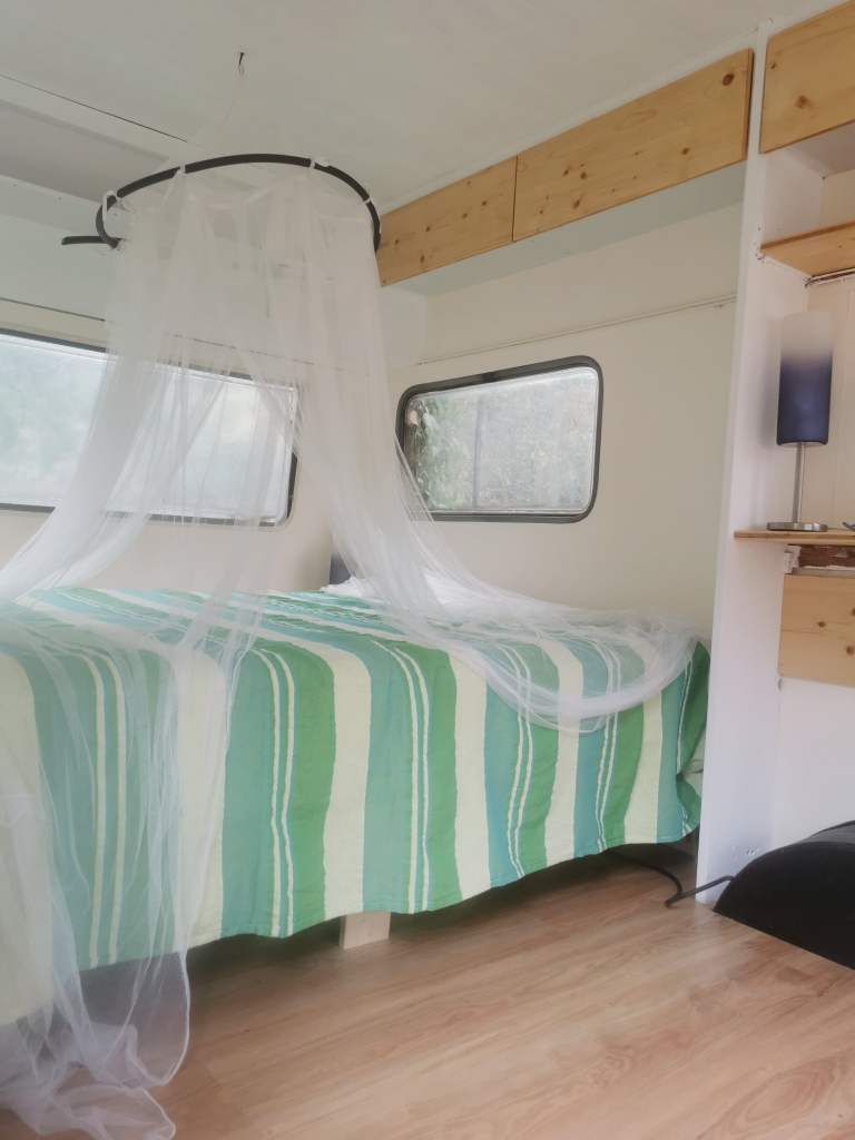 In unserem kleinen Tal mitten im Naturpark steht unser Wohnwagen mit Bett, Tisch und zwei Stühlen sowie einer einfachen Außendusche, Außentoilette und einer Hütte mit Kühlschrank, Gasherd und Geschirr für deinen Aufenthalt bereit. Du schätzt das Leben im Einklang mit Dir und der Natur und unseren nachhaltigen Ansatz und suchst Ruhe und Abgeschiedenheit, dann ist unser Wohnwagen mit Biotop und Steg zum Sonnenbaden direkt vor der Wohnwagentür vielleicht genau das Richtige für Dich. Deine Eltern möchten eine romantische Zeit in einem unserer Sternenhimmelhütten verbringen und du möchtest gleichzeitig Abenteuer und Platz für dich, dann kannst du bei uns im Tal im Wohnwagen übernachten und deine Eltern auf dem Hügel ca. 300m entfernt in einem der beiden Sternenhimmelhäuschen.